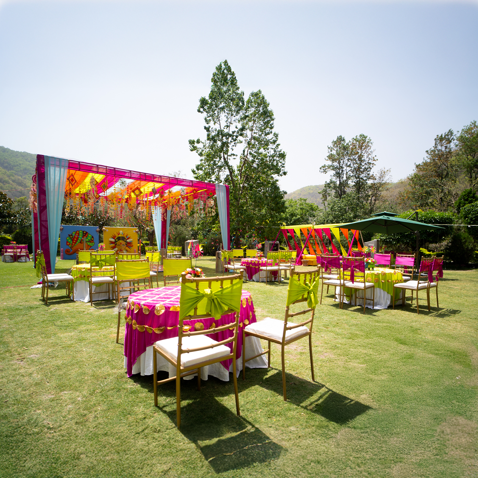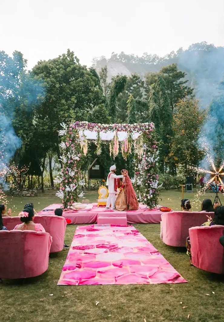 Exchange vows under the open sky, surrounded by lush greenery and the sounds of nature. An open garden wedding in Jim Corbett offers a romantic and serene setting for your big day. Perfect for daytime ceremonies, floral décor, and unforgettable wedding photos.
